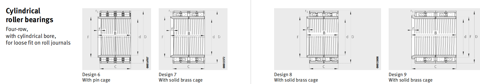 cylindrical roller and cage assemblies with solid cages.