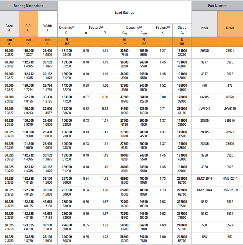 Bearing Dimensions
