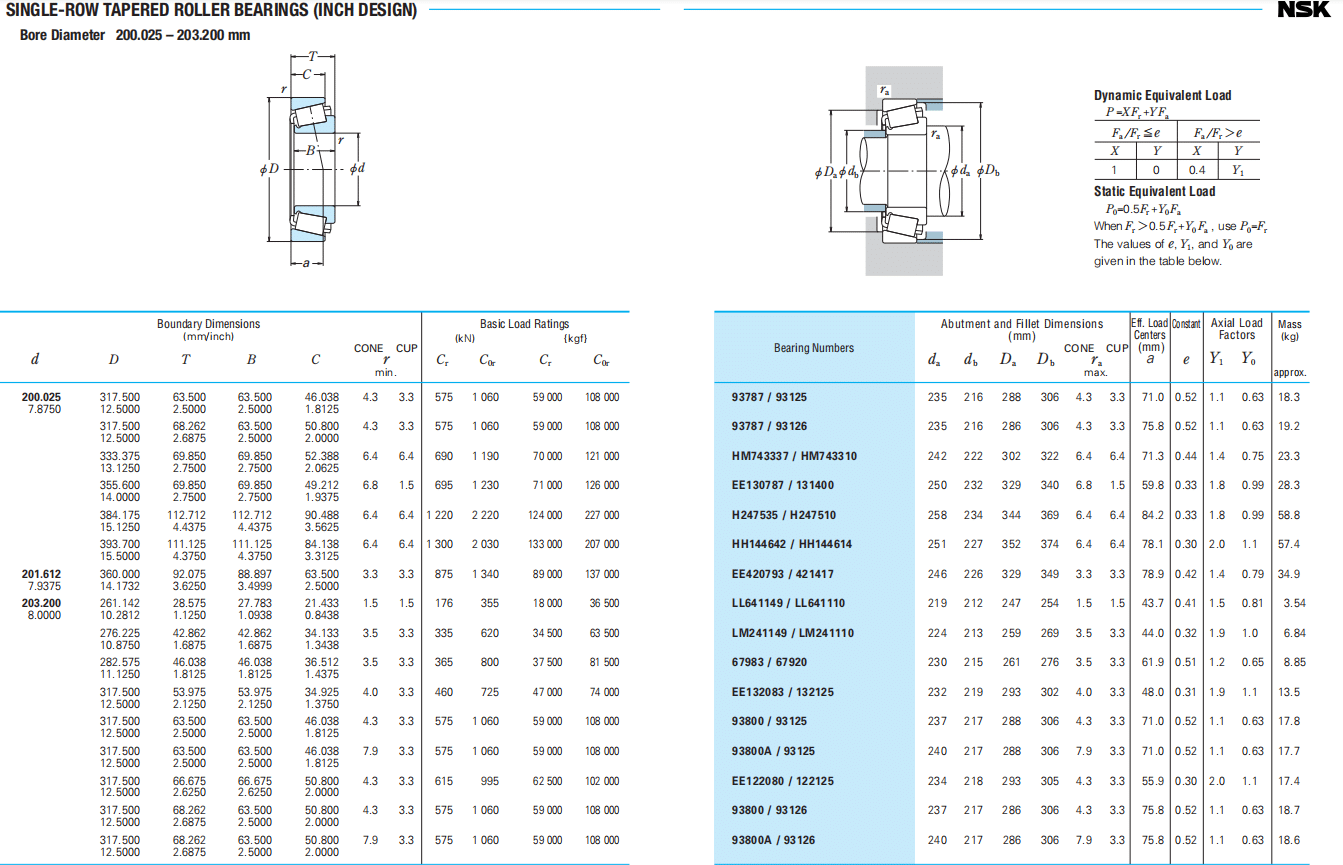 Bearing NumbersAbutment and Fillet Dimensions