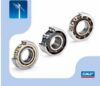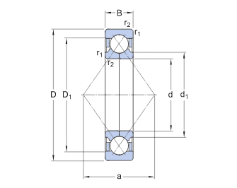 Four-point contact ball bearings are radial single row angular contact ball bearings with raceways that are designed to support axial loads in both directions. For a given axial load, a limited radial load can also be supported (Load ratio). The bearings are separable, i.e. the outer ring with ball and cage assembly can be mounted separately from the two inner ring halves.