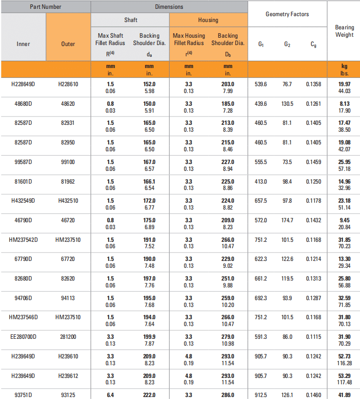 | Max Shaft Backing Fillet Radius Shoulder Dia. R(4) da | Max Housing Backing Fillet Radius Shoulder Dia. r(4) Db | G1 | G2 | Cg | |||||