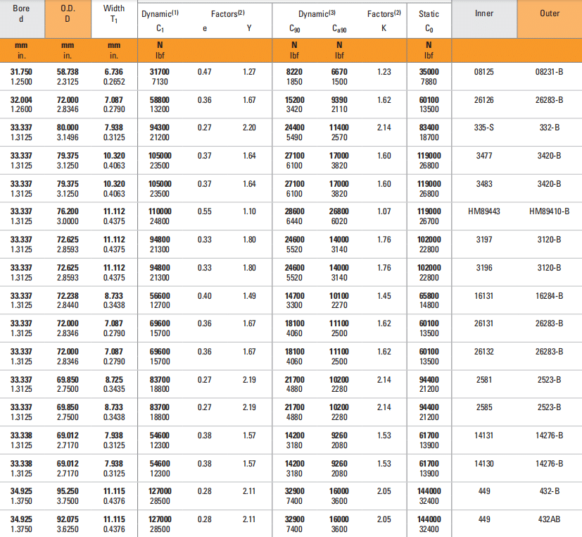 | 33.337 | 76.200 | 11.112 | 110000 | 0.55 | 1.10 | 28600 | 26800 | 1.07 | 119000 | HM89443 | HM89410-B |