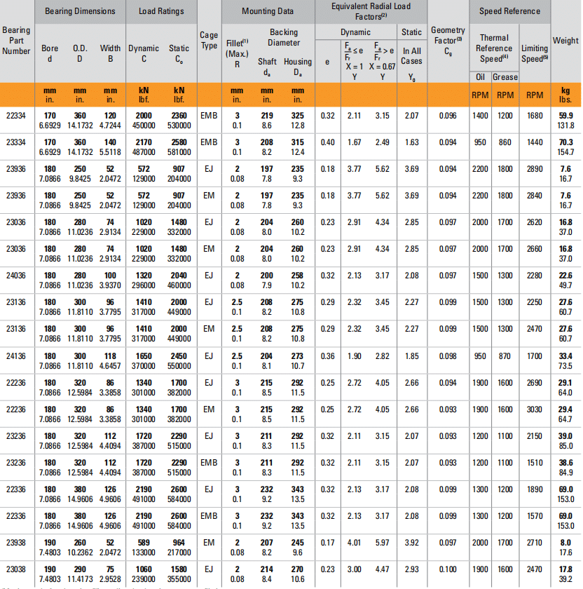 Mounting DataEquivalent Radial Load Factors2)