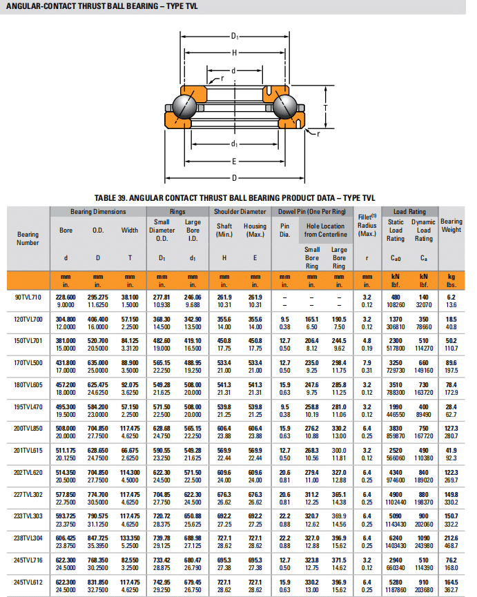 Bearing DimensionsRingsShoulder DiameterDowel Pin (One Per Ring)
