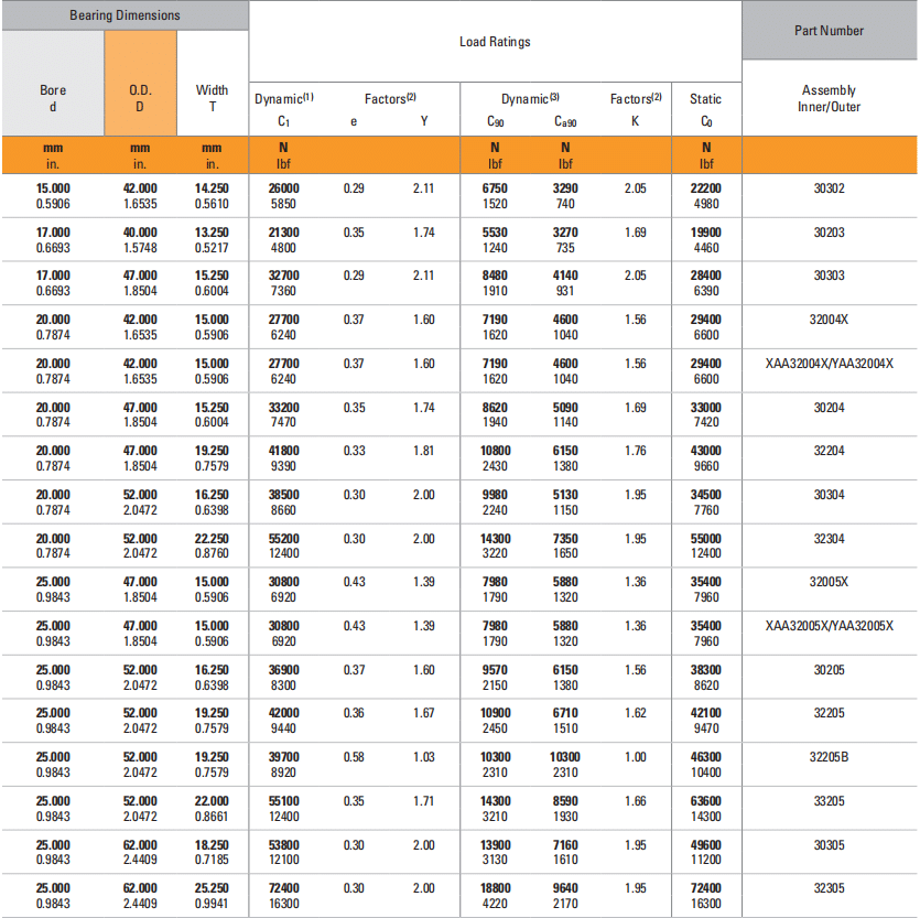 | 25.000 0.9843 | 47.000 1.8504 | 15.000 0.5906 | 30800 6920 | 0.43 | 1.39 | 7980 1790 | 5880 1320 | 1.36 | 35400 7960 | XAA32005X/YAA32005X |
