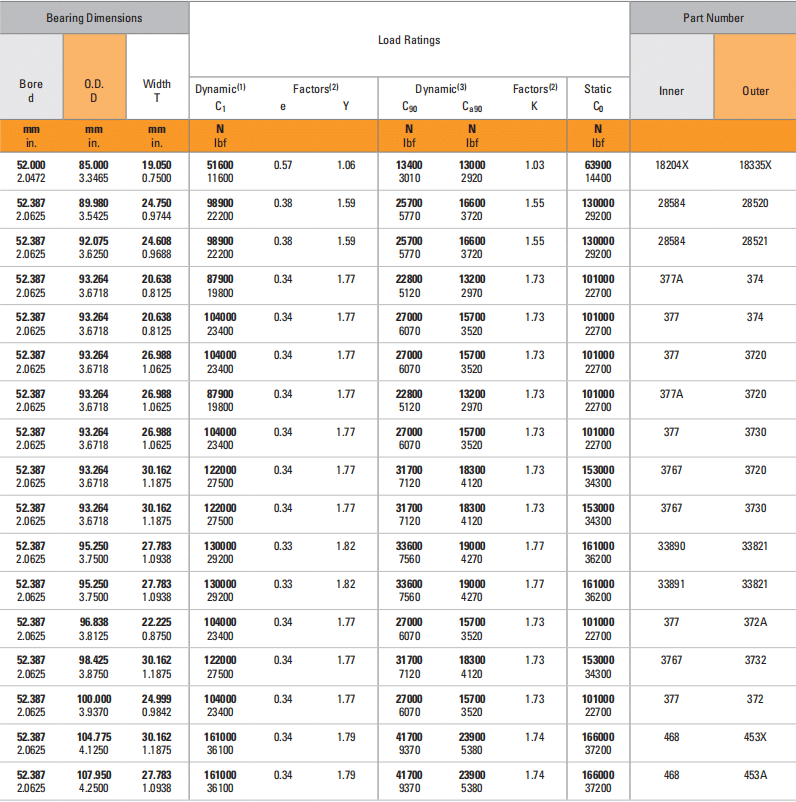 | 52.000 2.0472 | 85.000 3.3465 | 19.050 0.7500 | 51600 11600 | 0.57 | 1.06 | 13400 3010 | 13000 2920 | 1.03 | 63900 14400 | 18204X | 18335X |