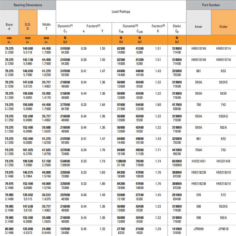 Bearing Dimensions