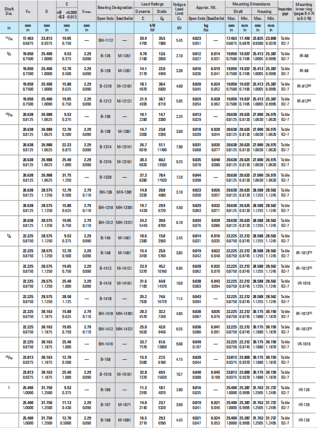 FwDCX max.Bearing DesignationLoad RatingsFatigue