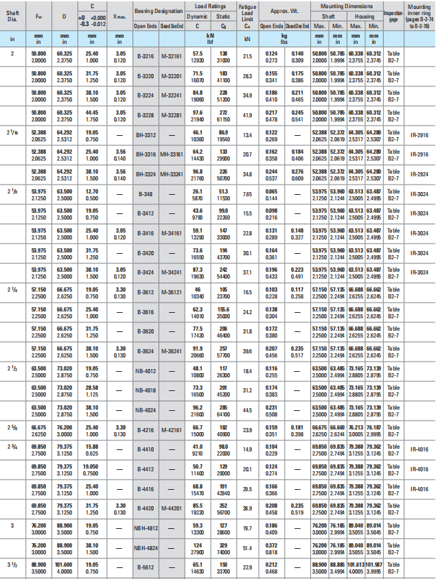 FwDCX max.Bearing DesignationLoadย RatingsFatigue