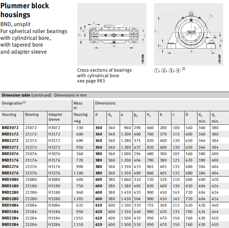 | Housing | Bearing | Adapter sleeve | d | ₁ | a | 81 | ₁ | b | C | D | de min | d₂ min. | |