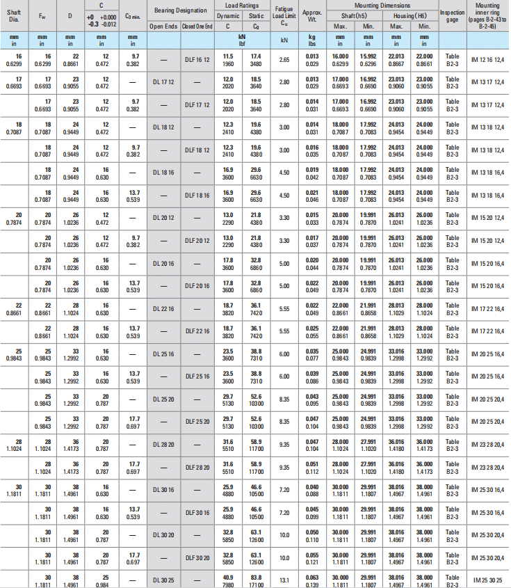 FwDCC3 min.Bearing DesignationLoad RatingsFatigue