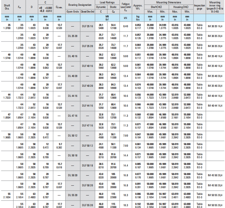 FwDCC3 min.Bearing DesignationLoad RatingsFatigue