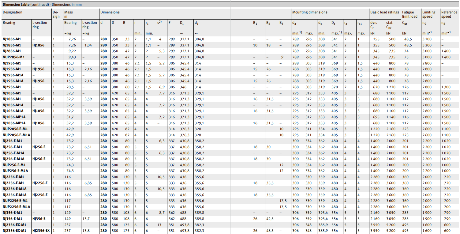| Bearing | L-section ring | Bearing ≈kg | L-section ring kg | d | D | B | r min. | 「1 min. | s²) | ₁ e | ₁ | ||