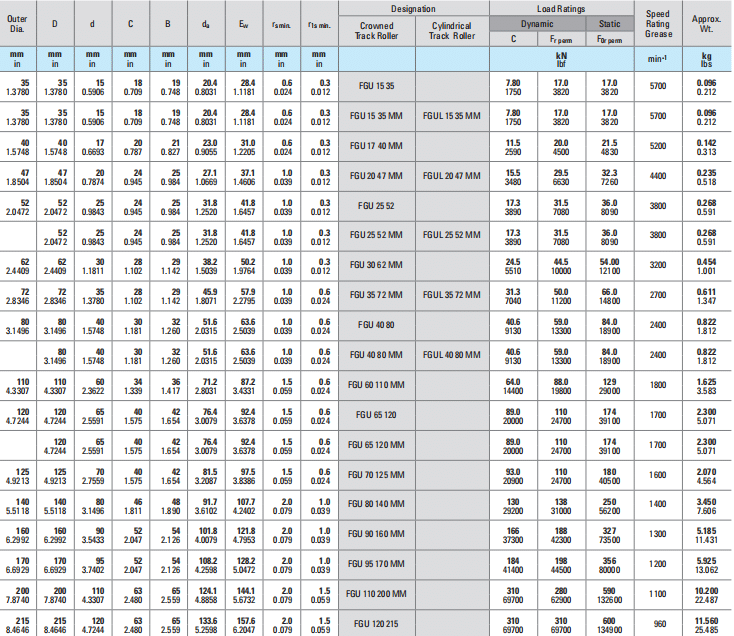 DesignationLoad RatingsSpeed  Rating  GreaseApprox.