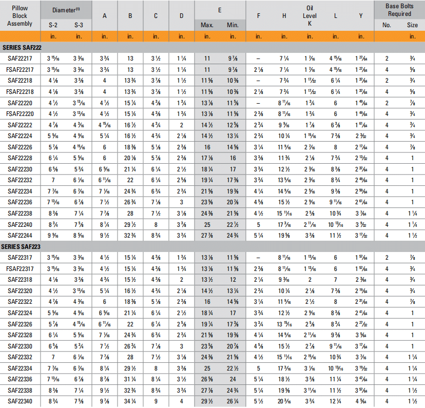 SAF223224 7⁄84 3⁄16618 3⁄85 1⁄82 3⁄81614 5⁄83 1⁄411 9⁄162 1⁄282 31⁄6447⁄8