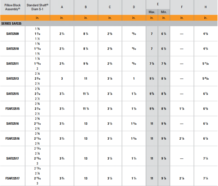 | Pillow Block Assembly” | A | B | C | D | E | F | H | |