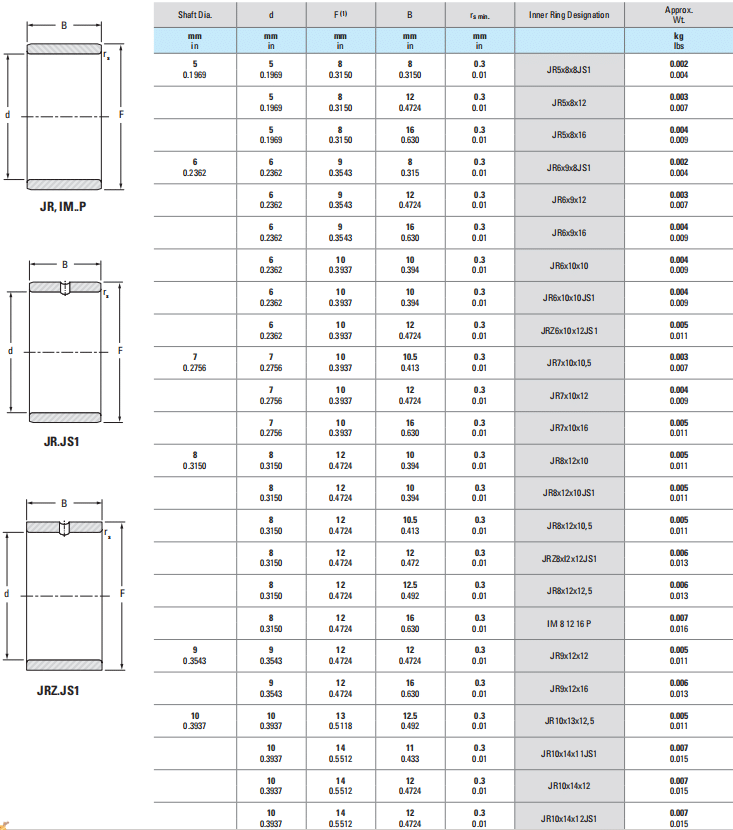 Shaft Dia.dF(1)Brs min.Inner Ring DesignationApprox.