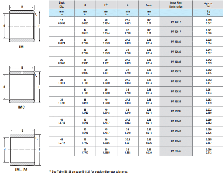 dF(1)Brs min.Inner Ring