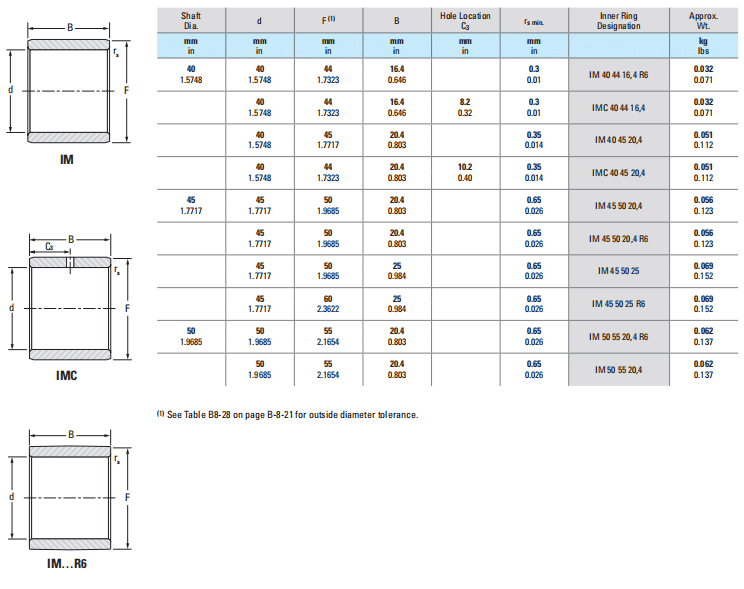 dF(1)BHole Location C3rs min.Inner Ring