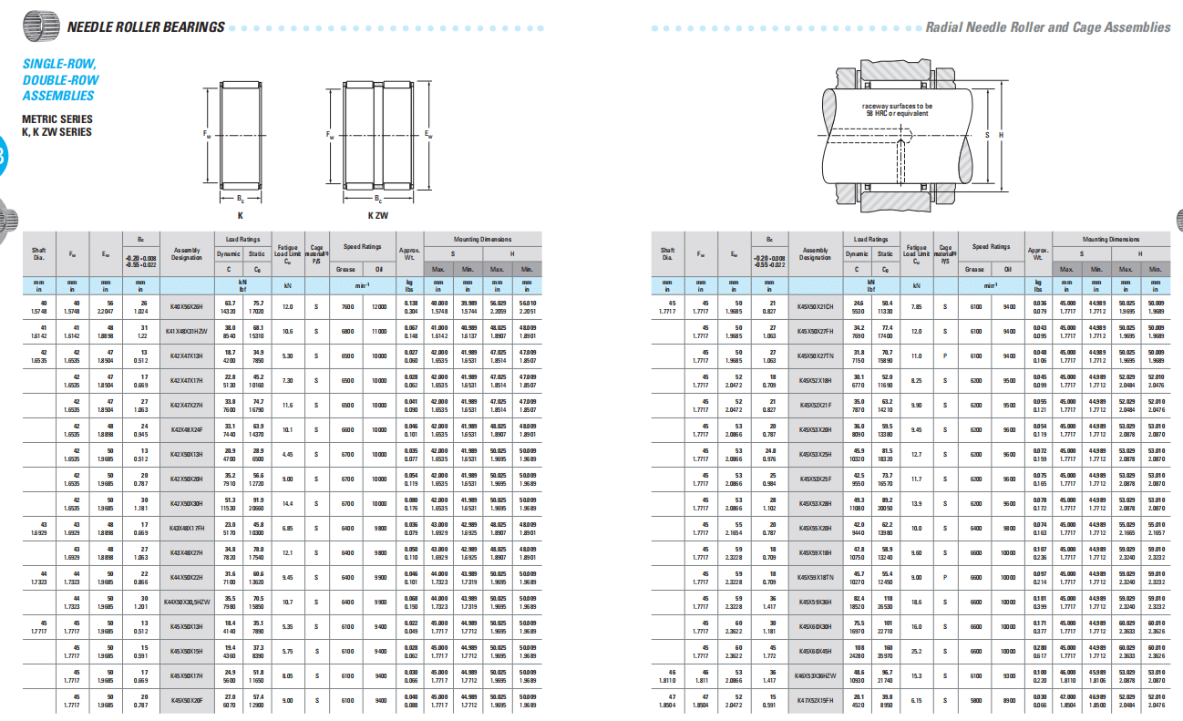 | 42 1.6535 | 48 1.8898 | 24 0.945 | K42X48X24F | 33.1 7440 | 63.9 14370 | 10.1 | 6600 | 10000 | 0.046 0.101 | 42.000 1.6535 | 41.989 1.6531 | 48.025 1.8907 | 48.009 1.8901 | |