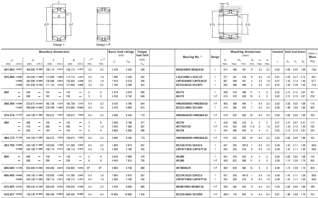 | L163149D/L163110 LM763449D/LM763410 EE231401D/231975 | 1 1 1 | 377 381 405 | 431 469 488 | 418 451 466 | 8 4 2 | 3.2 3.2 3.2 | 1.6 1.6 3.2 | 0.31 0.47 0.44 | 2.20 1.43 1.53 | 3.27 2.14 2.28 | 2.15 1.40 1.50 | 40.7 67.7 75.3 |