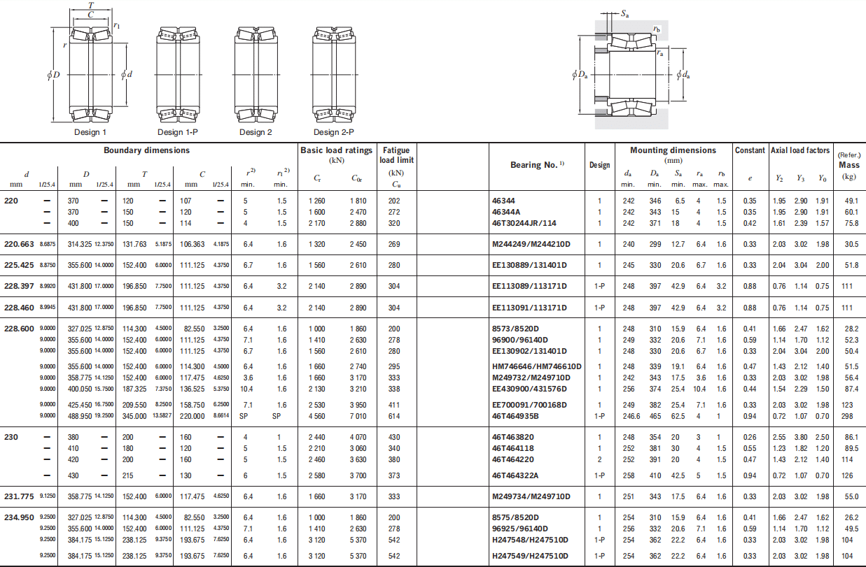 | Bearing No. 1) | Design | Mounting dimensions (mm) da Da Sa ra rb min. min. min. max. max. | Constant