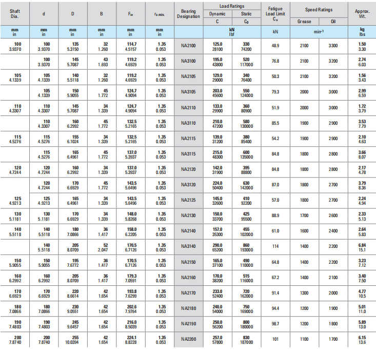 Bearing    DesignationLoad RatingsFatigue