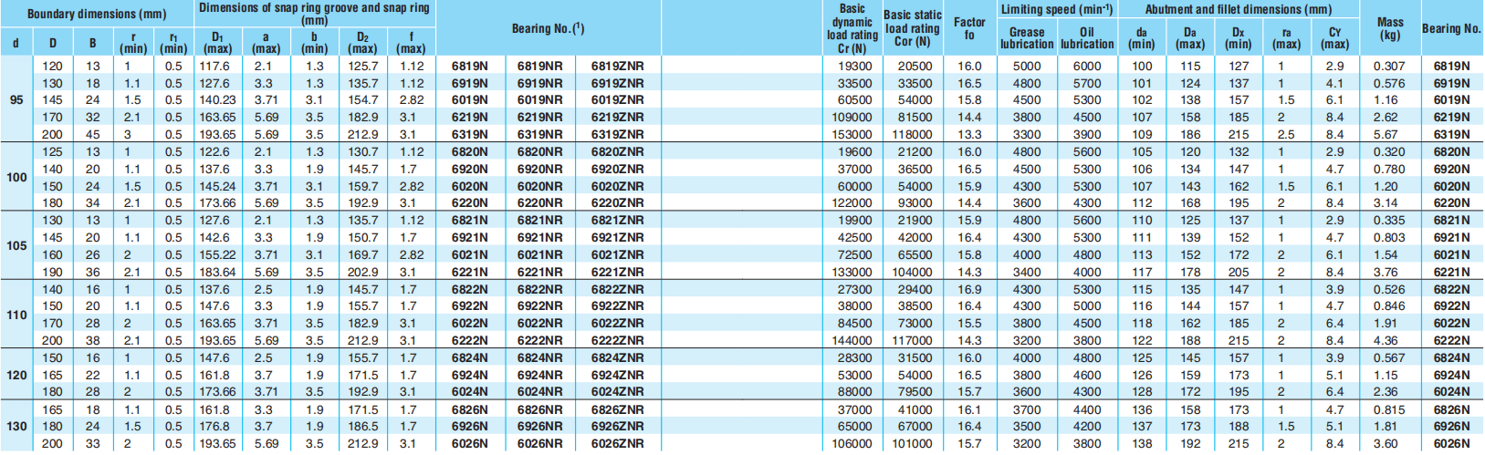 Boundary dimensions (mm)Dimensions of snap ring groove and snap ring