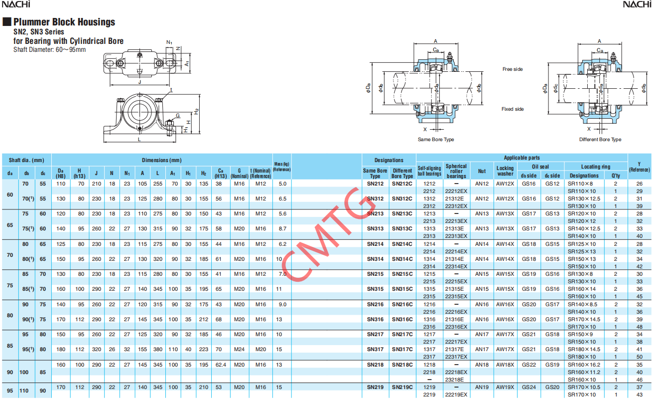 Plummer Block housings ease to constitute bearing units by using with self-aligning ball bearings or spherical roller bearings. NACHI Plummer Block housing design is