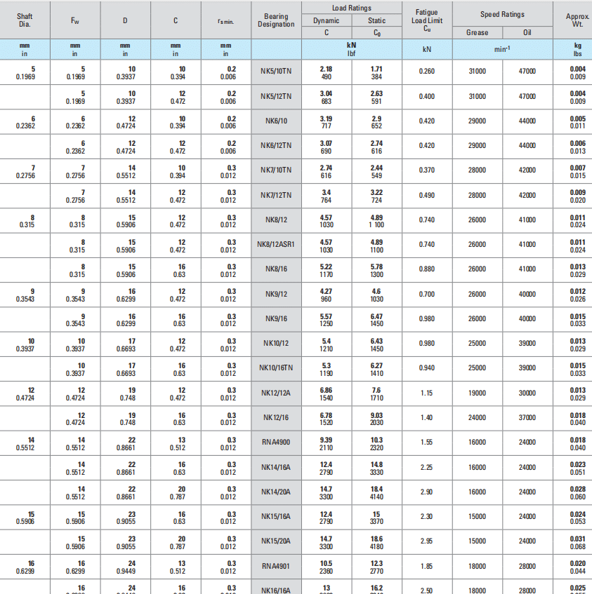 NEEDLE ROLLER BEARINGS