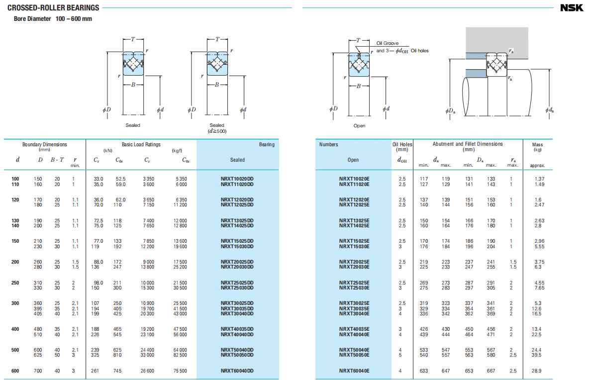| 120 | 170 180 | 20 25 | 1.1 1.1 | 36.0 70.0 | 62.0 110 | 3 650 7 150 | 6 350 11 200 | NRXT12020DD NRXT12025DD | |