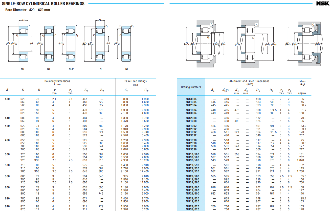 | Bearing Numbers | Abutment and Fillet Dimensions (mm) | Mass (kg) | |||||||