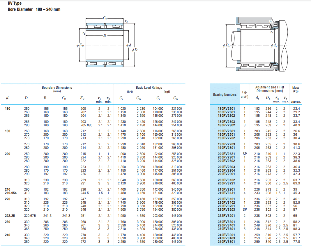 Four-Row Cylindrical Roller Bearings, RV