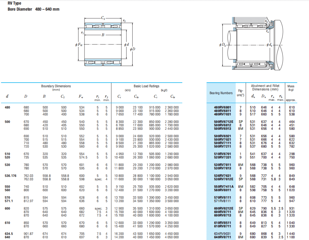 Four-Row Cylindrical Roller Bearings, RV