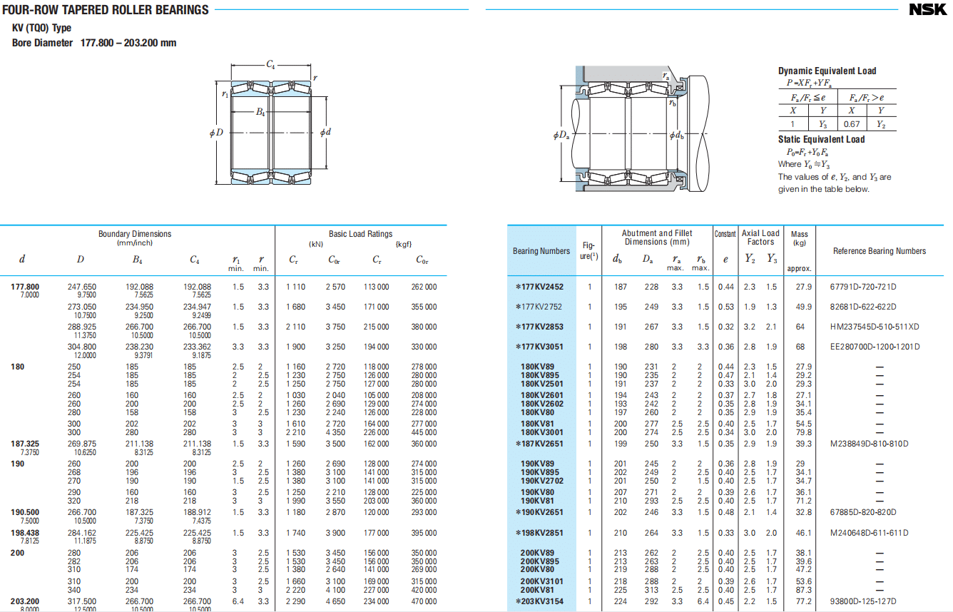 | Bearing Numbers | Fig- ure(1) | Abutment and Fillet Dimensions (mm) | Constant e | Axial Load Factors Y2 Y3 | Mass (kg) approx . | Reference Bearing Numbers | ||||