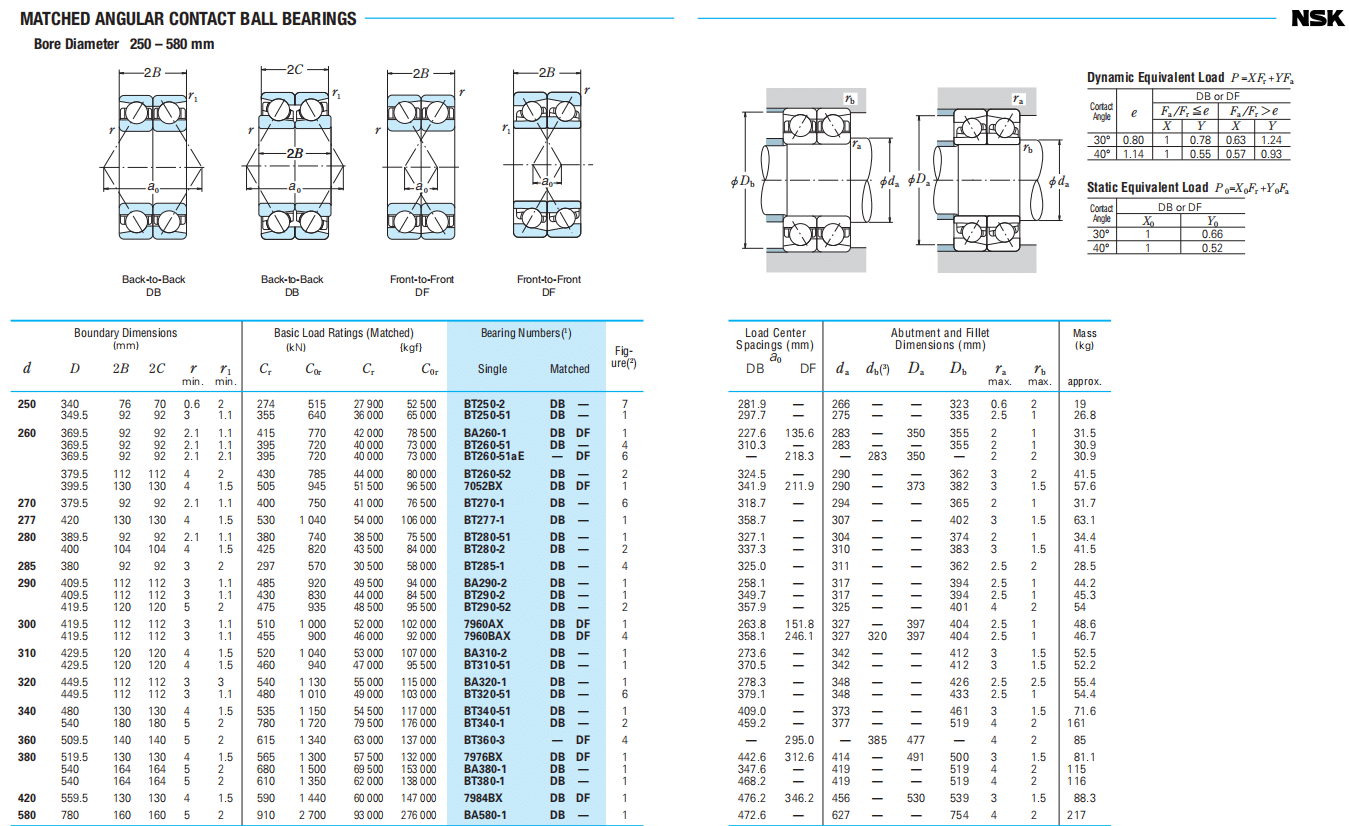 NSK MATCHED ANGULAR CONTACT BALL BEARINGSBT340-51DB