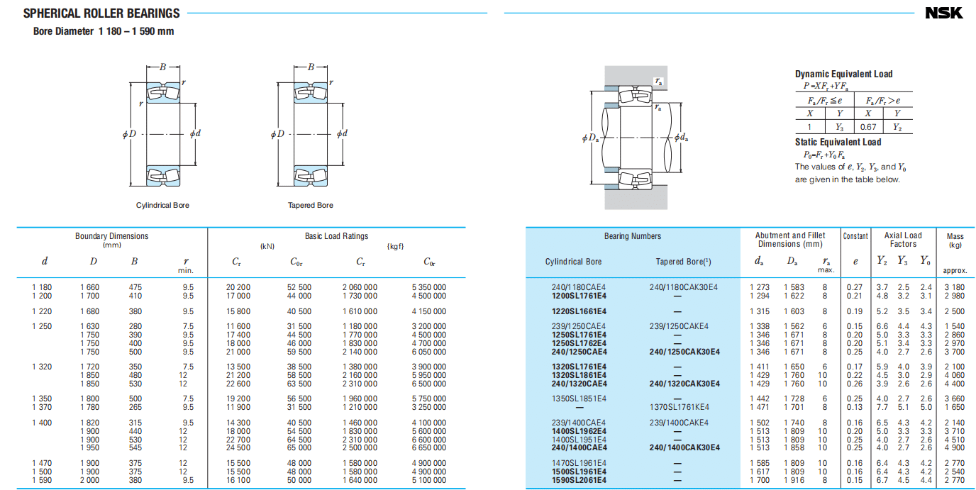 | 240/1400CAE4 | 240/1400CAK30E4 | 1 513 | 1 858 | 10 | 0.25 | 4.0 | 2.7 | 2.6 | 4 900 |
