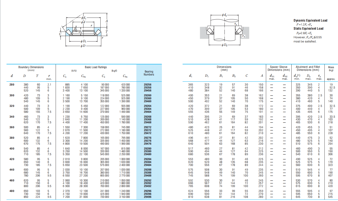 | 440 | 600 680 780 | 95 145 206 | 5 6 9.5 | 2 030 3 750 6 550 | 10 100 16 700 27 200 | 207 000 380 000 665 000 | 1 1 2 | 030 000 710 000 770 000 | 29288 29388 29488 | |||