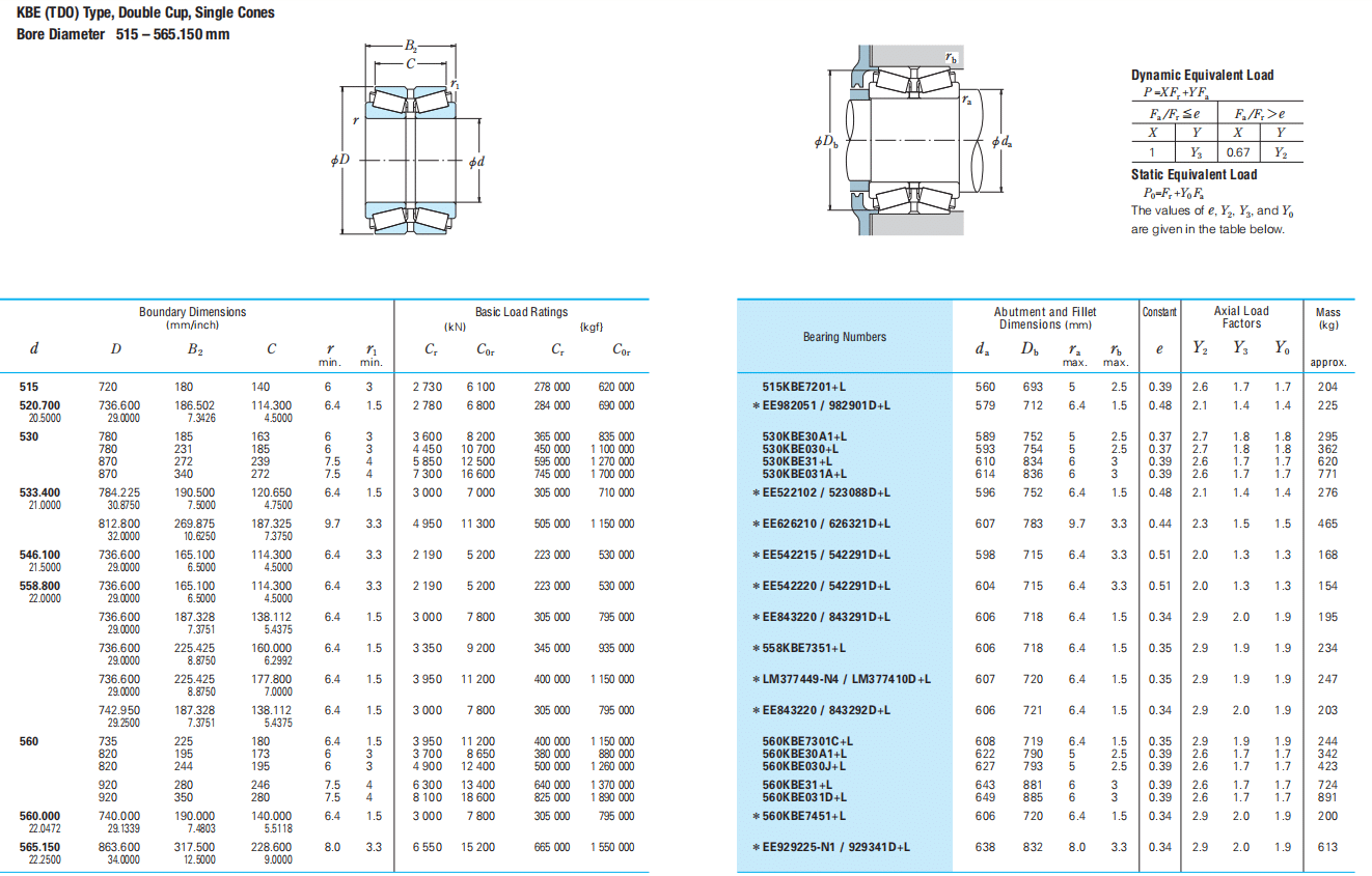 Bearing NumbersAbutment and Fillet Dimensions (mm)
