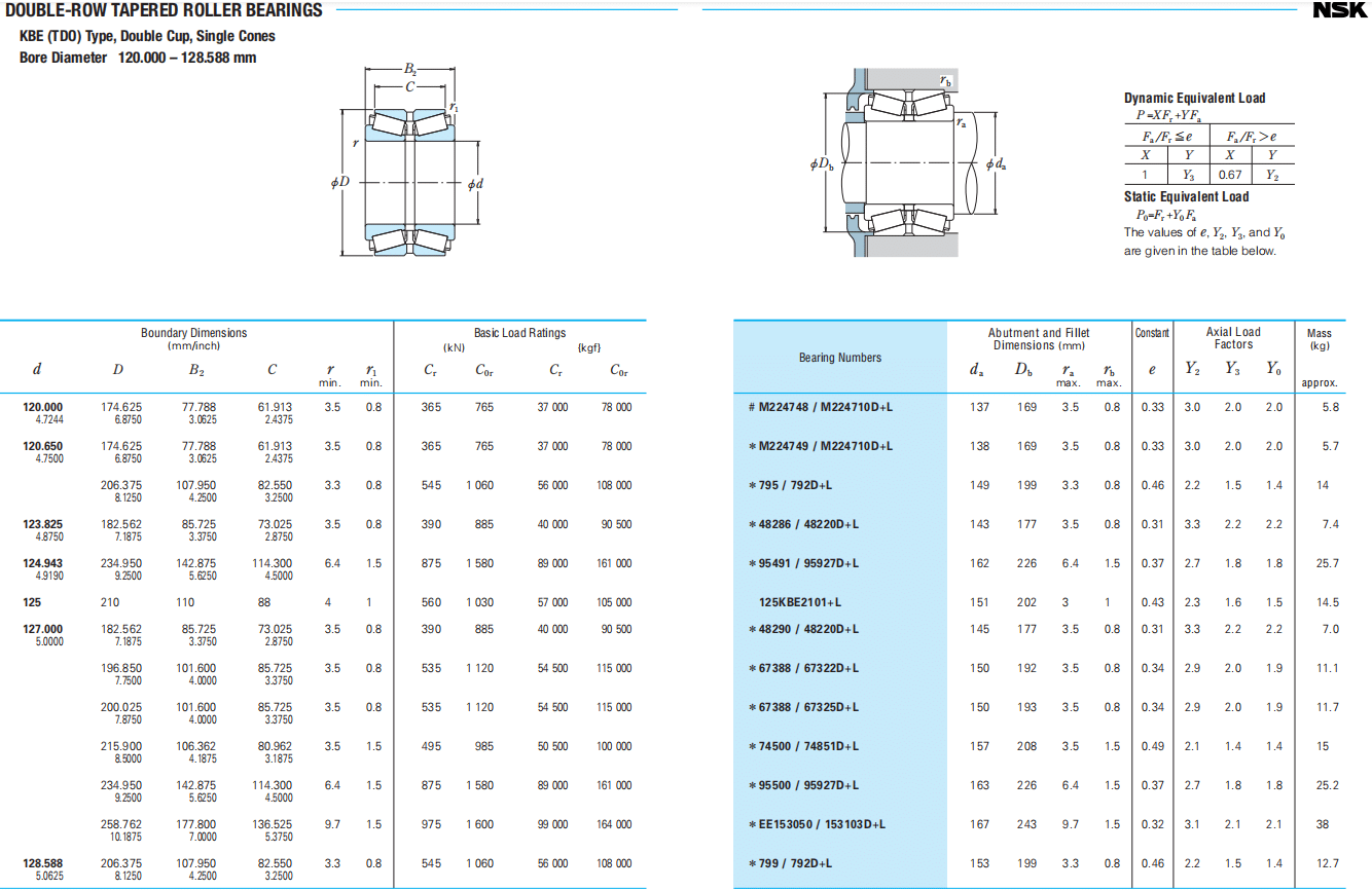 | Bearing Numbers | Abutment and Fillet Dimensions (mm) | rb max . | Constant e |