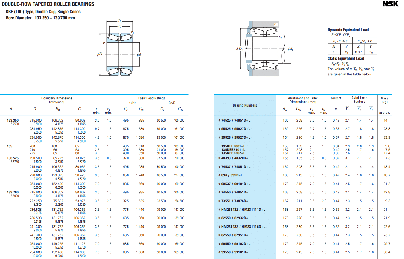 Bearing NumbersAbutment and Fillet Dimensions (mm)