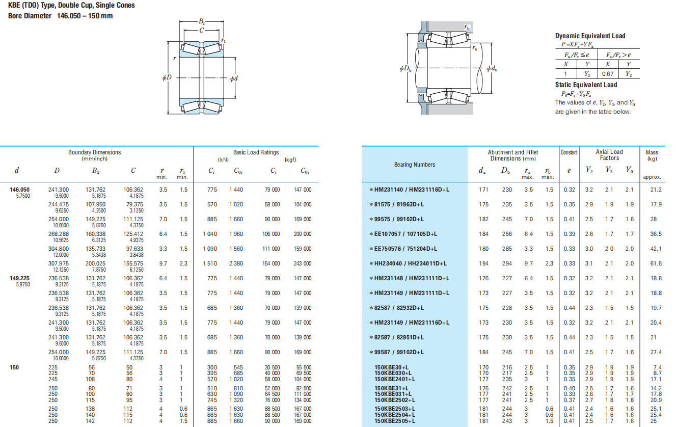 Bearing NumbersAbutment and Fillet Dimensions (mm)