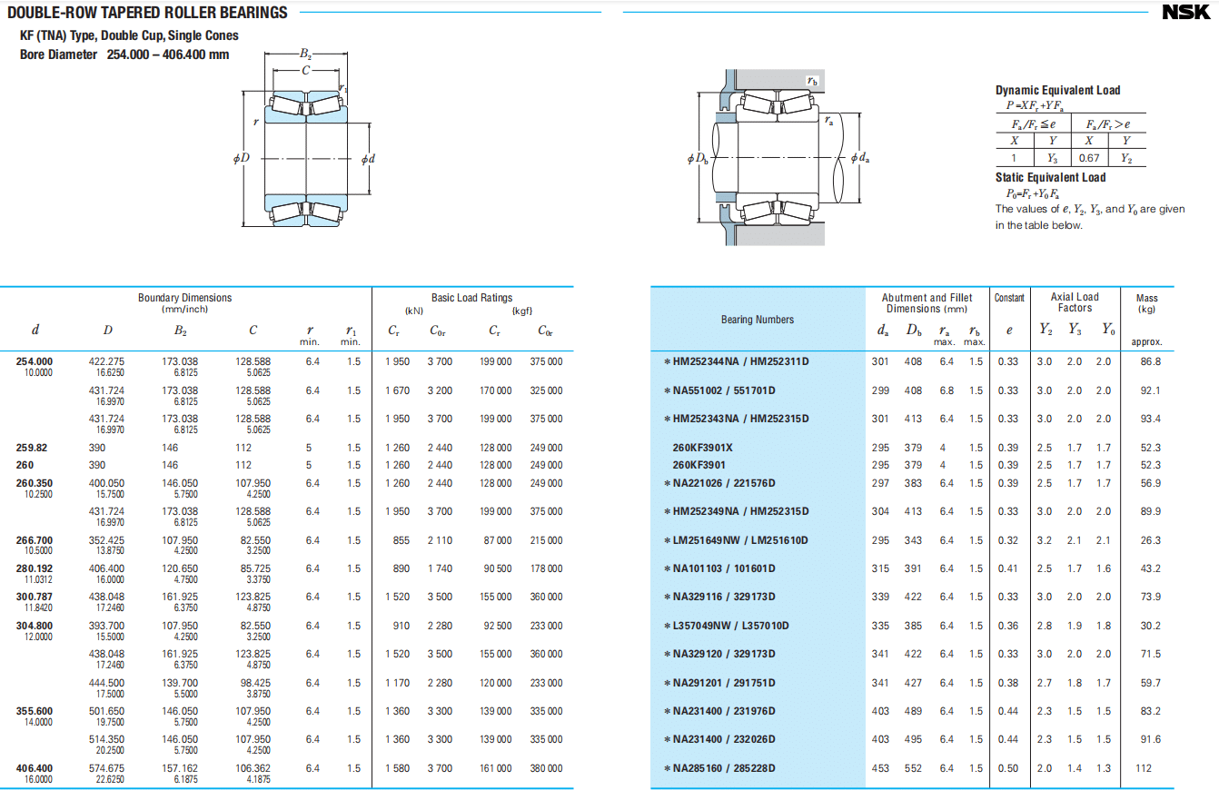 | Bearing Numbers | Abutment and Fillet Dimensions (mm) da Db ra rb max . max . | Constant e | Axial Load Factors Y2 Y3 Y0 | Mass (kg) approx . | |||||