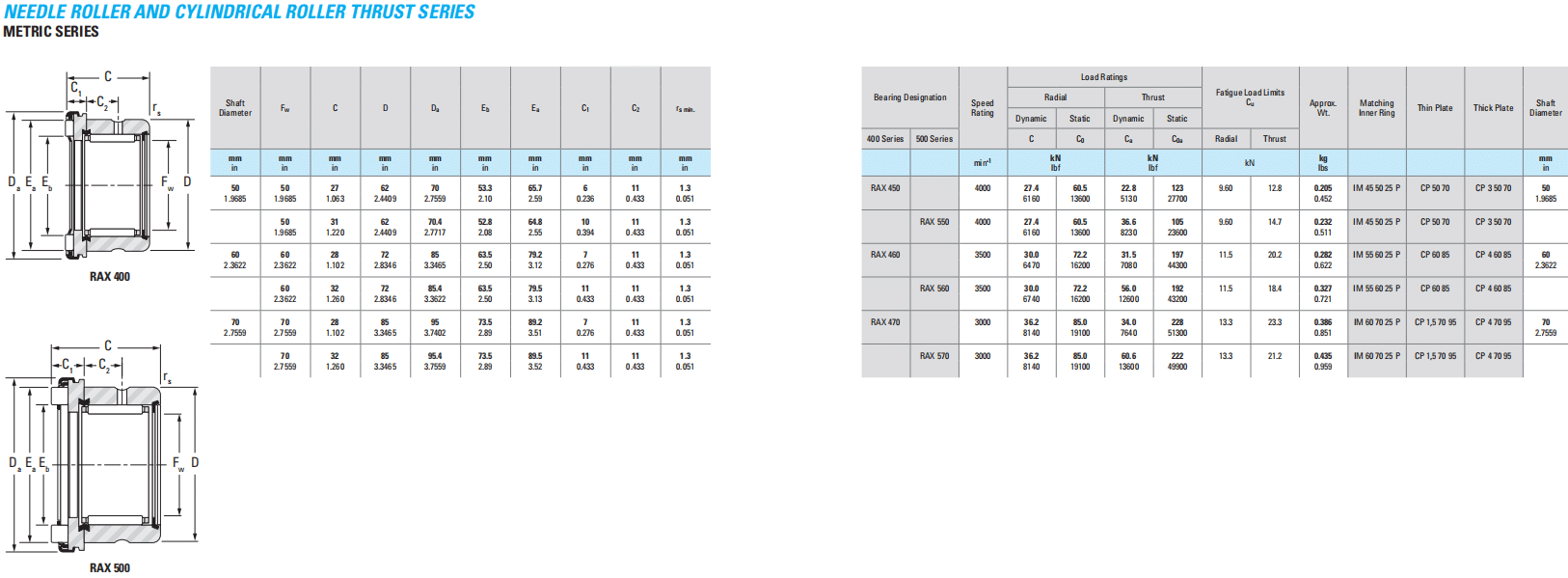 400 Series500 SeriesCCCaCaaRadialThrust