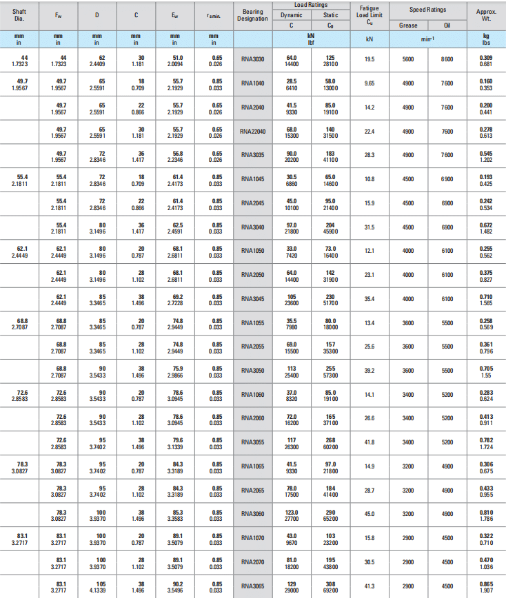 Bearing    DesignationLoad RatingsFatigue