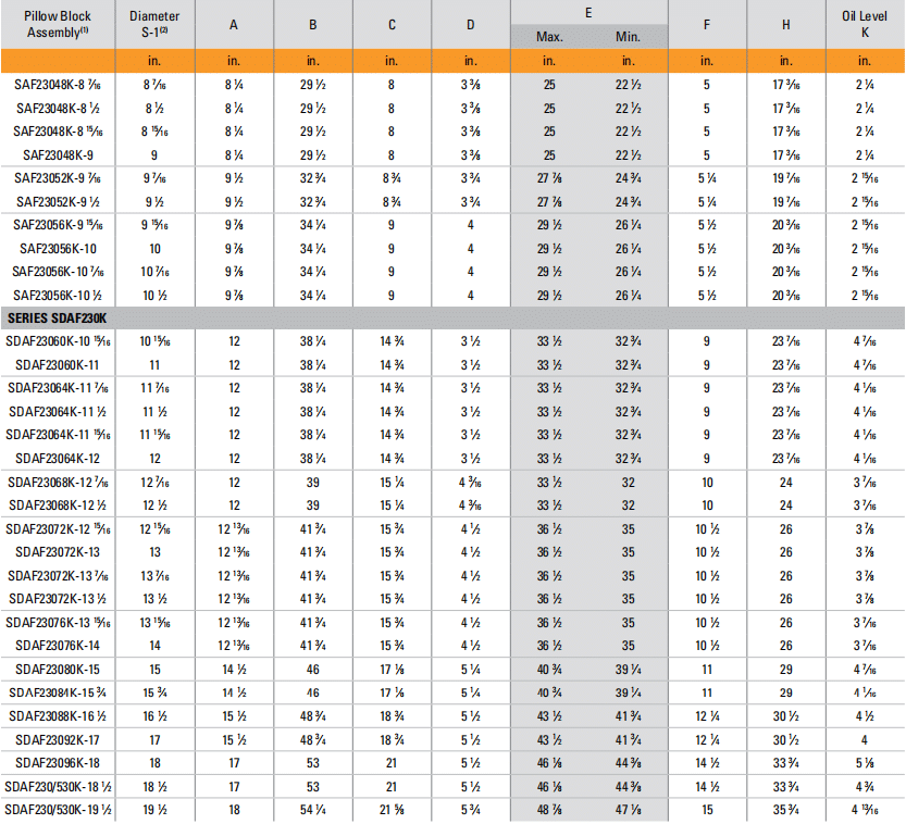 SAF23048K-8 1⁄28 1⁄28 1⁄429 1⁄283 3⁄825 22 1⁄2517 3⁄162 1⁄4