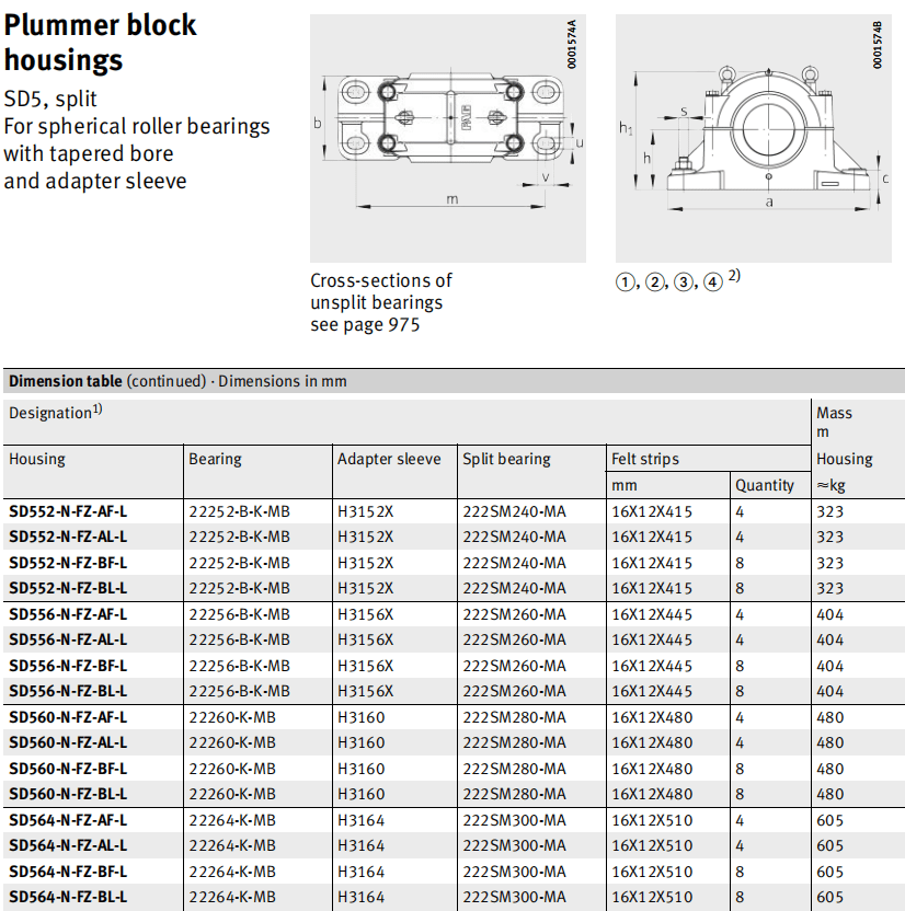 | Housing | Bearing | Adapter sleeve | Split bearing | Felt strips | ||