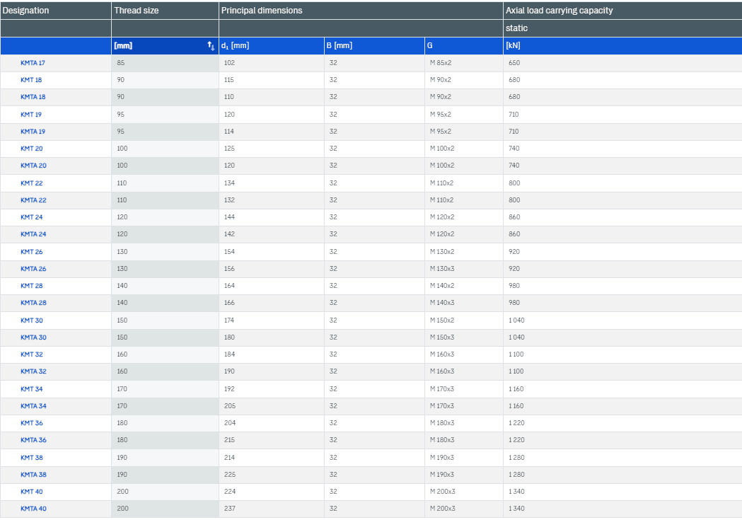 DesignationThread sizePrincipal dimensionsAxial load carrying capacity