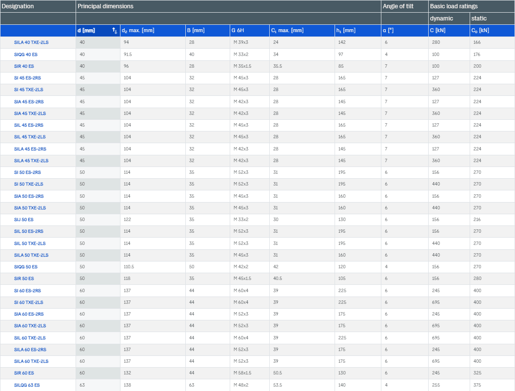 SIL 45 ES-2RS   45  104  32  M 45×3  28  165  7  127  224