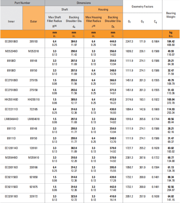 | Max Shaft Backing Fillet Radius Shoulder Dia. R(4) da | Max Housing Backing Fillet Radius Shoulder Dia. r(4) Db | G1 | G2 | Cg | |||||